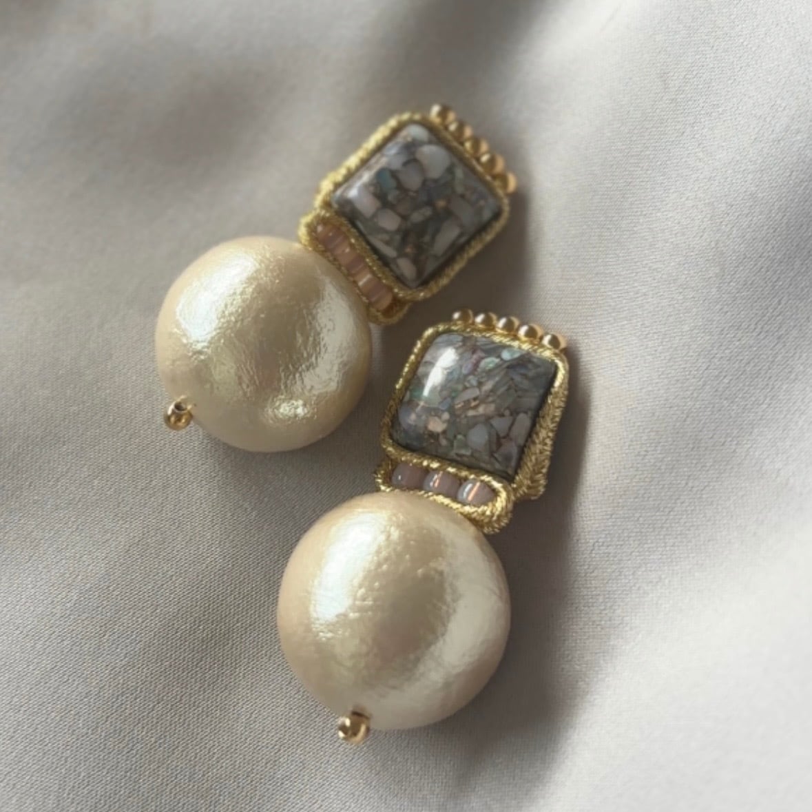 淡く綺麗なコッパーオパールカボションと18mmの大きめコットンパールを合わせました。