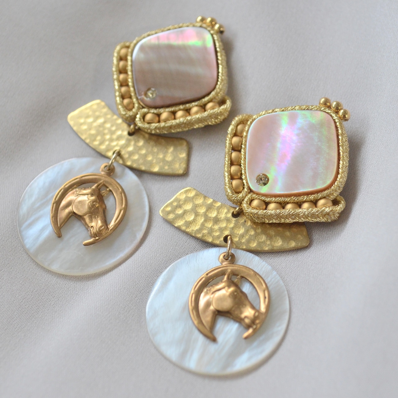 シェルと真鍮の耳飾り